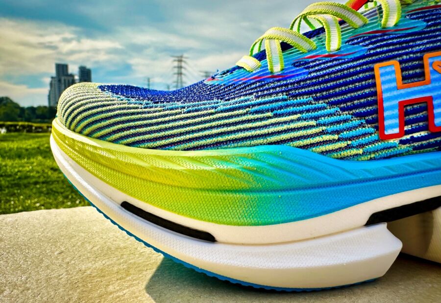 The winged plate in the Cielo X1 is more flexible than the plates in other racers. For example, the Saucony Endorphin Elite– it also has a high toe-spring but its forefoot rocker feels a lot more aggressive due to its stiffer plate. This translates to punchier toe-offs and a faster ride.